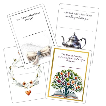 Four individually designed printable bookplates that you can personalize and add to your own My Family Tree Food & Stories book, or add to the front pages of a book you might give as a gift to someone you love and care about.